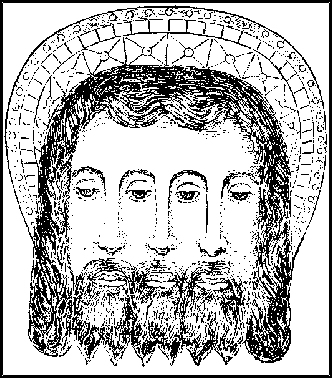الآلهة الثلاثة يجلسون جنباً إلى جنب.....فى إجتماع أقنومى عائلى......و لكن ينقصه العنصر المريمى الحريمى!!!!
