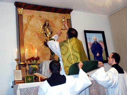 أحد طقوس العبادة الكاثوليكية فى بلدة لودر فى فرنسا...و تبدو الطقوس الإحتفالية بين تمثالين.....و يبدو فى الصورة أحد التماثيل التى يتم إيقاد الشموع لها و الصلاة تحت قدميها......هل هو اليسوع...أم أحد القديسين.......أم هو إحياء لسُنّة عبادة زيوس رب الأرباب.......لا نعرف على وجه التحديد.....و لكن الشيئ الأكيد أنها فى كل الحالات عبادة للشيطان!!!