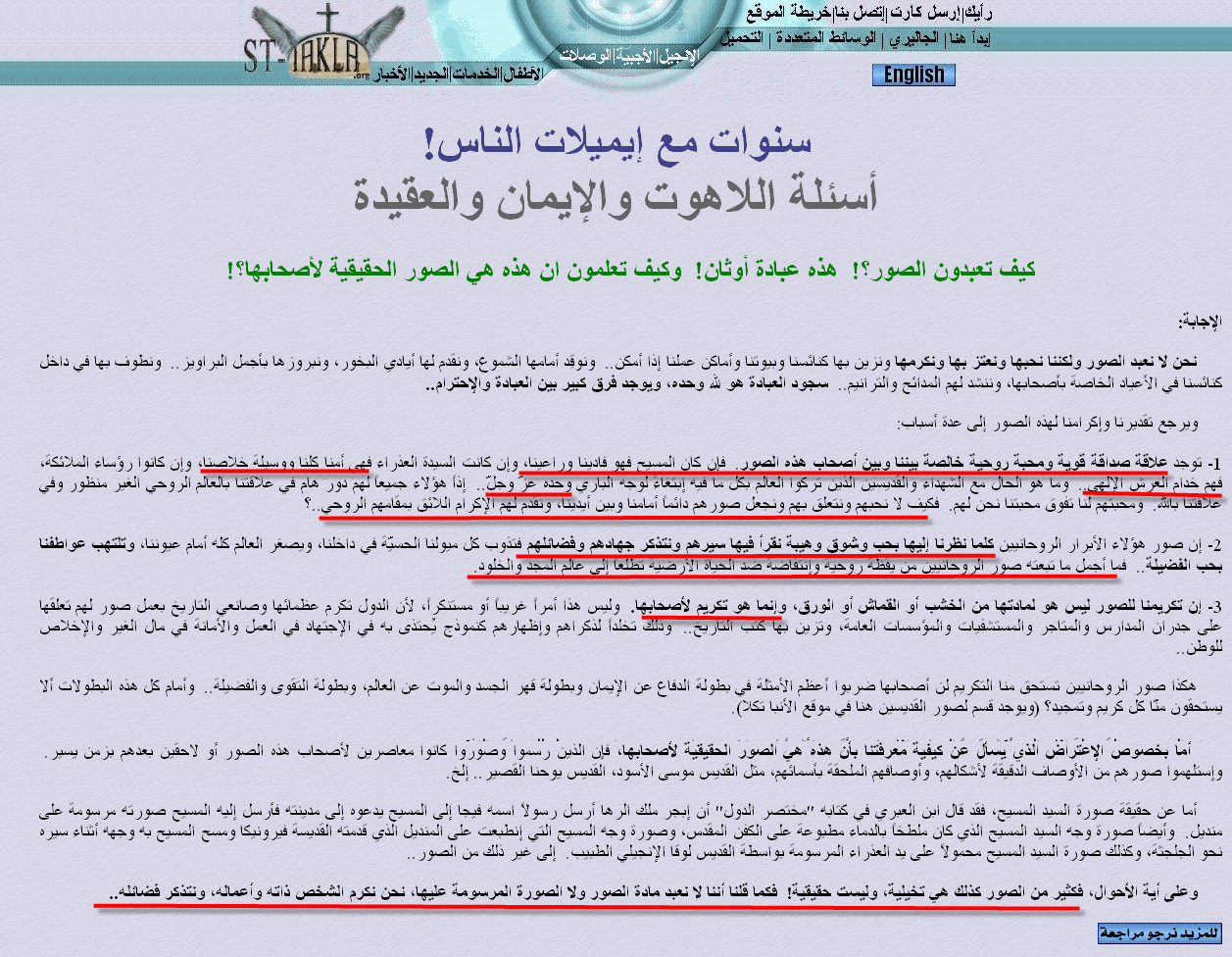 صورة من أحد المواقع الصليبية.....و يتحدث عن كل مظاهر العبادة للصور، ثم يستدرك و يقول: نحن لا نعبدها....و هناك فرق بين العبادة و الإحترام.....