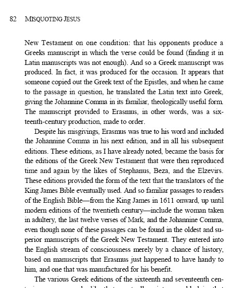 ان ارازموس لم يجد هذا النص فى مخطوطاتة اليونانية ... والتى تقرأ