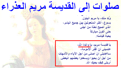 من الجملة السابقة " اتخذوني و إمي إلهين " نفهم أن مؤلف القرأن يقول أننا نتخذ مريم إلها ...