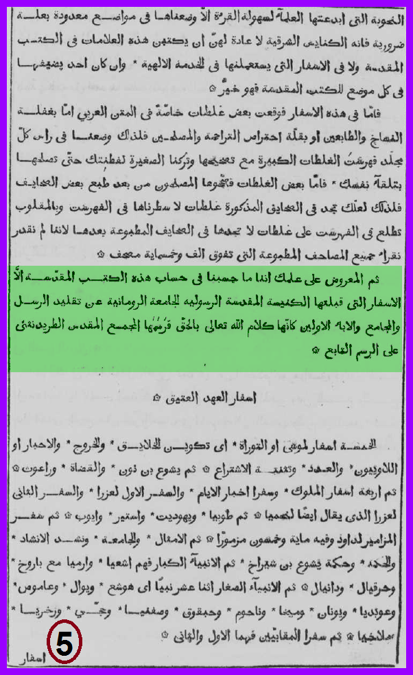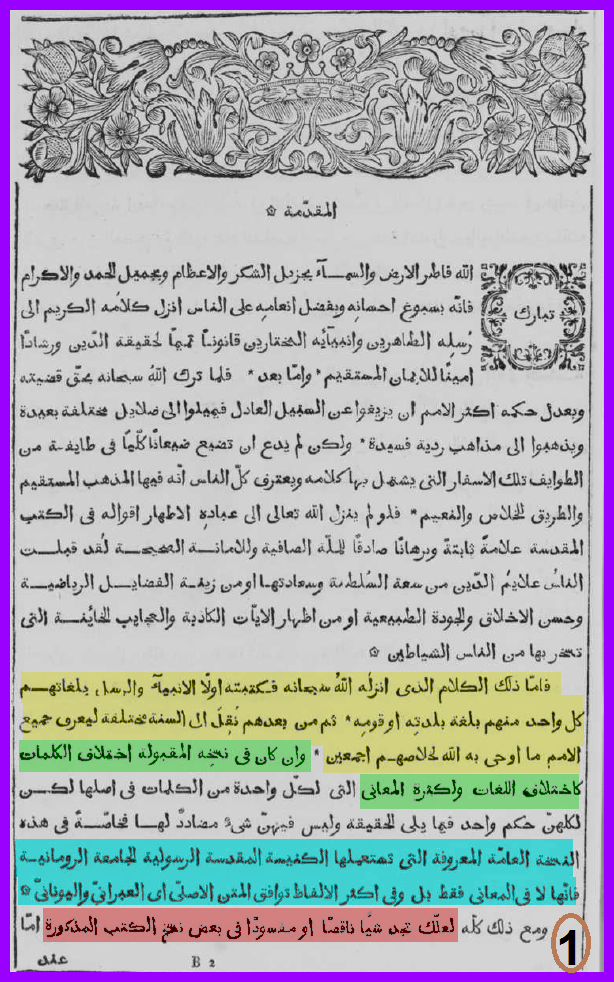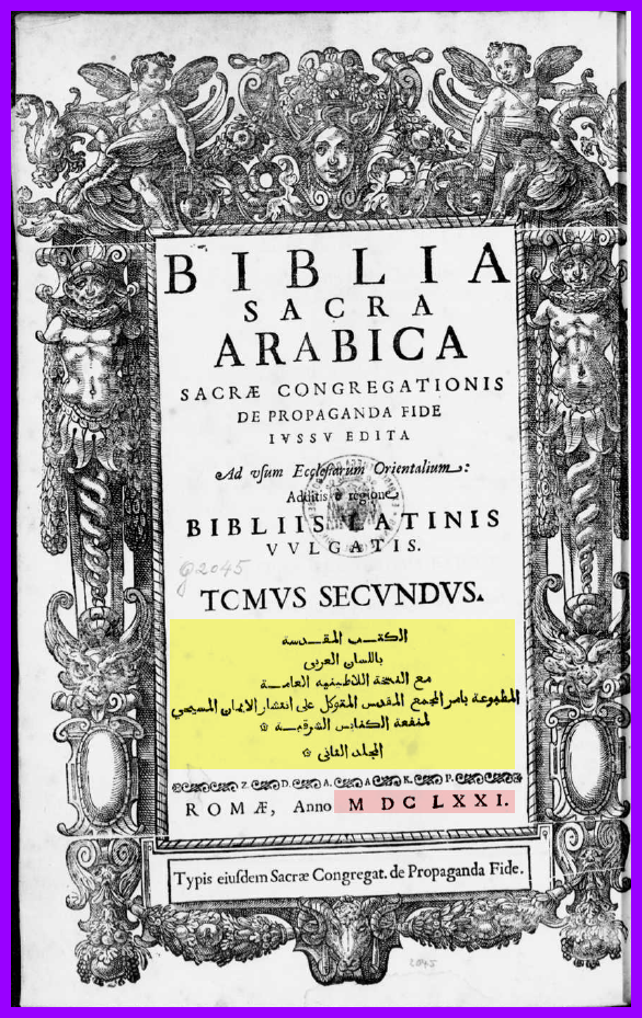 2- وحينما بدأت كتابة موضوع فضائح الترجمات العربية وجدت نسخة من طبعة روما 1671 (بيبليا ساكرا ارابيكا) وهي ترجمة طبعتها الكنيسة الكاثوليكية باذن من البابا اي رؤية رسمية للكنيسة وفي مقدمتها حديث عن تحريف نسخ كتاب الكنيسة ومحاولة اصلاحها وحديث عن غفلة الانبياء والرسل عن قواعد اللغة ربما تعتبر هذه اقدم شهادة رسمية علي فساد كتاب الكنيسة