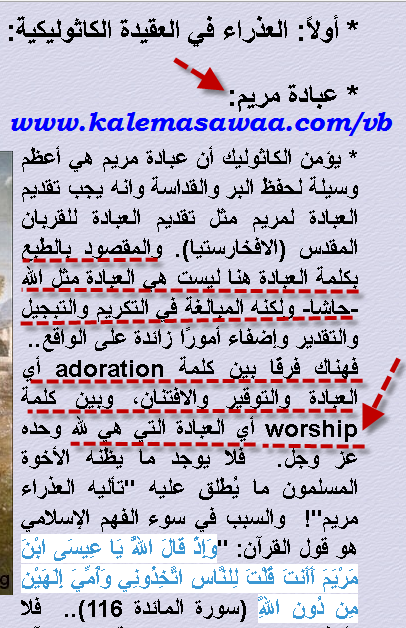 الآن يانصراني ، سنرى إن كانت مكانة العذراء عند الكاثوليك هي مجرد إحترام و توقير زائدين أم أنّ الأمر يتجاوز ذلك ليصل لحدّ التأليه ؟؟؟؟؟