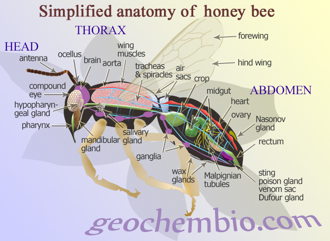 2- (from their bellies exits drink) bellies, not heads nor trunks, science tells us that in bee’s abdomen there is a “honey stomach” where many enzymes convert the nectar into a liquid, honey stomach serves as a reservoir for liquids to be later regurgitated many times until they become honey.