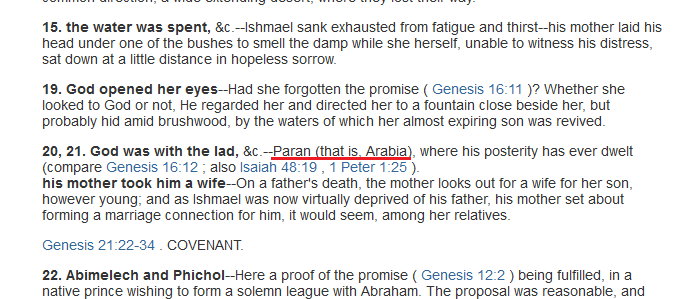 Commentary Critical and Explanatory on the Whole Bible by Robert Jamieson, A. R. Fausset and David Brown -1871 | Gen21:21