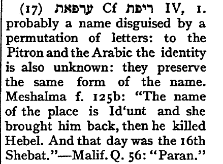الترجمة العربية لتوراة السامريين - تحقيق الدكتور اليهودي السامري حسيب شحادة - الاكاديمية الوطنية الاسرائيلية للعلوم والآداب - القدس 1989 - هامش سفر التكوين 21: 21