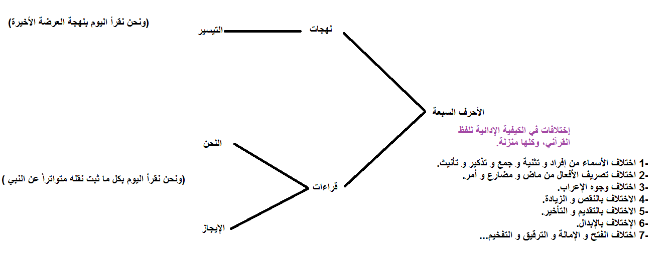 فأنا علمت بأنها غير الأحرف السبع التي هي لهجات عربية مختلفة، ونحن اليوم نقرأ بحرف قريش - حرف العرضة الاخيرة.