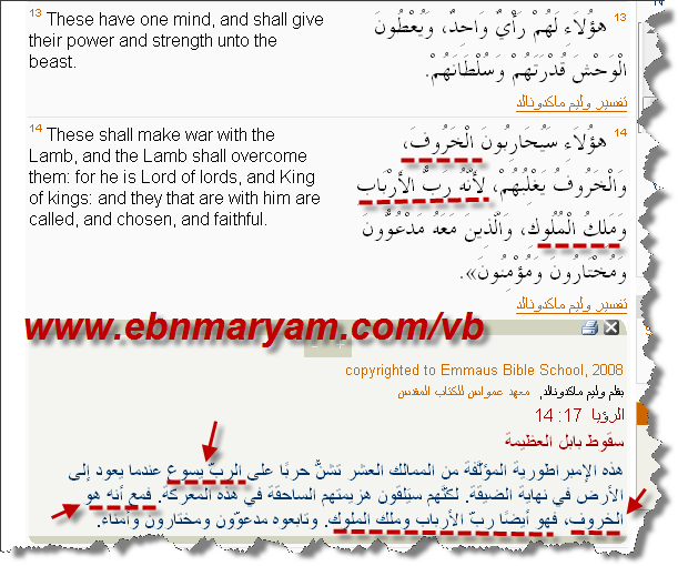 رؤيا 17 :14 هؤلاء سيحاربون الخروف والخروف يغلبهم لانه رب الارباب وملك الملوك والذين معه مدعوون ومختارون ومؤمنون.