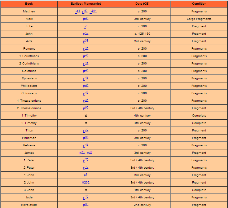 يوضح الجدول السابق أن كل ما قبل الفترة بين القرنين الثالث والرابع فهو مجرد قصاصات ليس إلا.