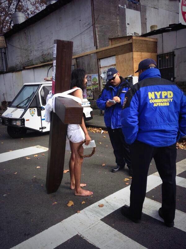 شارك فيه نصراني بزي يسوع وانتهى بتوقيفه من قبل الشرطة لانه اثار ضجة
