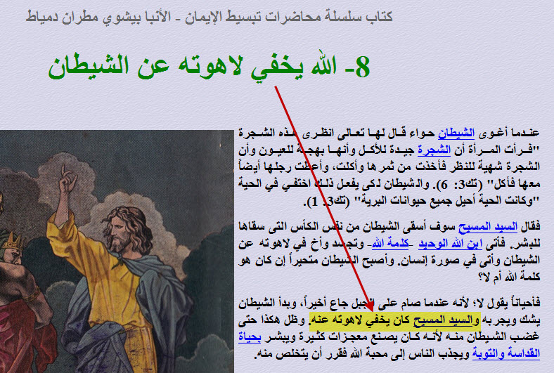 بما ان المسيح اله القدير الجبار لمادا كان يخفي لاهوته على الشيطان الضعيف المهان ,.؟؟؟