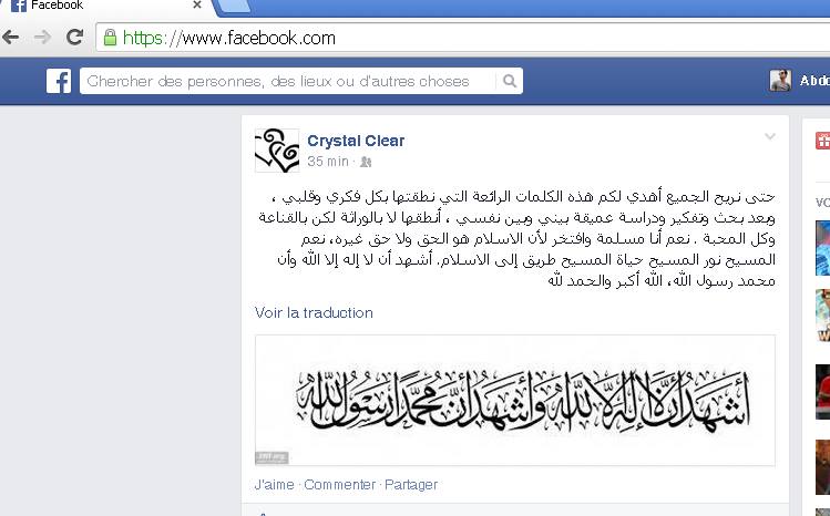 والبارحة جأت البشرى قد اسلمت الاخت كريستال كلير