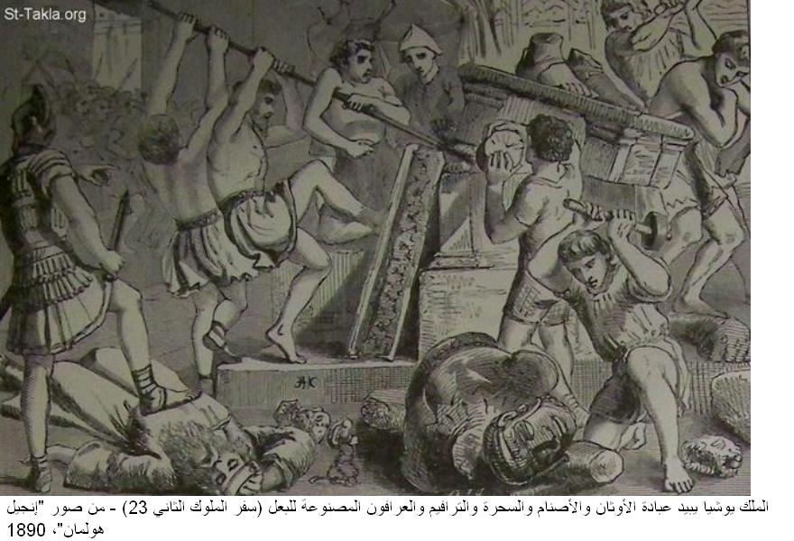 كسر و هدم التماثيل مع طرد و ذبح و حرق الوثنيين و ممتلكاتهم فى الكتاب المقدس