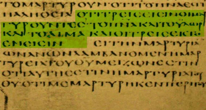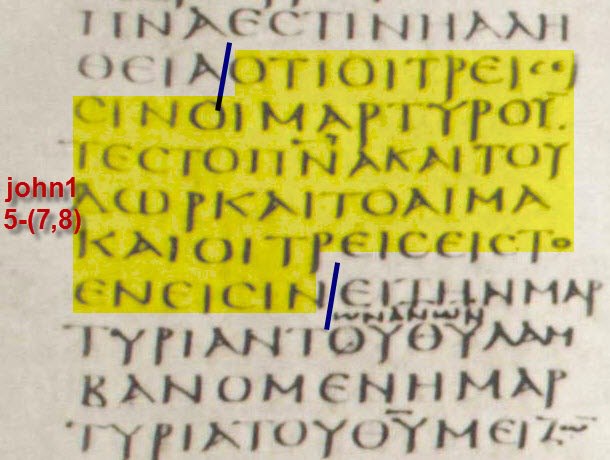 المخطوطة الفاتيكانية والسينائية والسكندرية – رسالة يوحنا 5 : 7 ...ونلاحظ عدم وجود النص