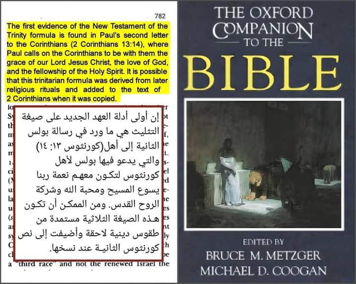 بيـــان حقيقة نص التثليث - رسالة يوحنا الأولى 5 : 7 من المراجع المسيحية