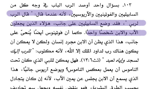 شرح الإيمان المسيحي، الجزء الثاني، الكتاب الخامس، الصفحة رقم: 165 ، النقطة رقم: 103.