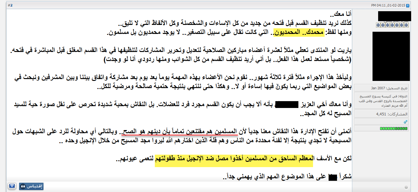 فهؤلاء الذين امامنا ما ان يدخل مسلم ويناقشهم باحترام ويقيم عليهم الحجه شتموه وطردوه ( ولا اعرف عن اي محبه يتكلمون ) غير انهم دائما شغالين استهزاء لمقدساتنا اعتمادا على الكذب والتدليس المقدس فهؤلاء مخادعين يقولون انهم يتعدون على المسلمين حتى لا يفقدوا مصداقيتهم (هم اصلا لا عندهم علم ولا حتى مصداقيه فالحمد لله الكثير من المسيحيين دخلوا الاسلام بسببهم ولدينا اكبر مثال مذيعين قناة الحياة من زكريا بطرس مرورا بوحيد انتهاء برشيد الذين يدعون العلم ومع ذلك دخل الكثير من الناس بسبب كذبهم وتدليسهم في الاسلام ) امام من يراهم من المسيحيين ويرى شتائمهم للمسلمين فينفر منهم ويصبح يشك في دينه ونصيحتي لاي مسيحي باحث عن الحق فتش الكتب واعمل بنصيحة كتابك واسأل اهل العلم ان واجهك اي تساؤل