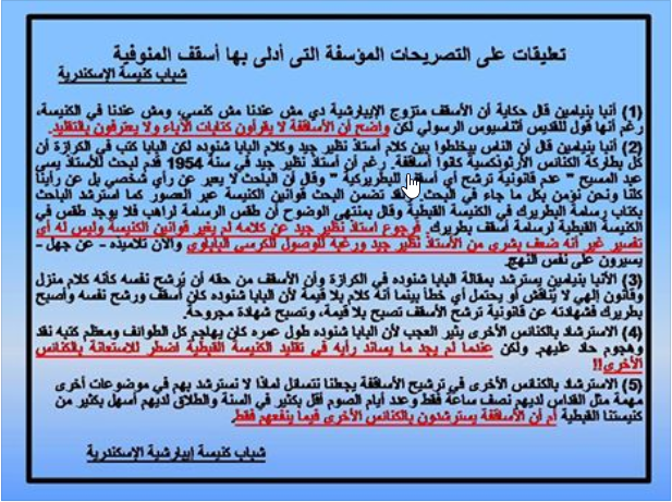 تعليقات على التصريحات المؤسفة التى أدلى بها أسقف المنوفية شباب كنيسة الإسكندرية