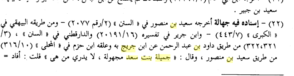 1. جهالة جميلة بنت سعد و هي على الاغلب اخت عبيد بن سعد الطائفي و لكن لا جرح و لا تعديل لها بل لا ترجمة لها !!!