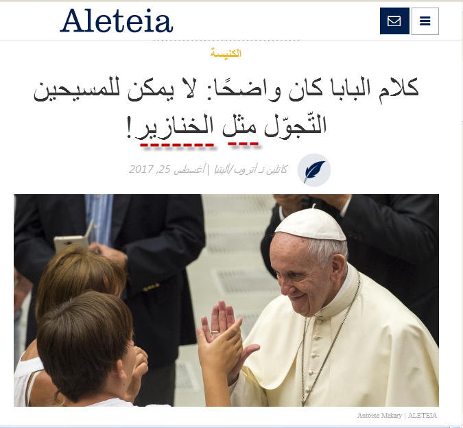 كلام البابا كان واضحًا: لا يمكن للمسيحين التّجوّل مثل الخنازير!
