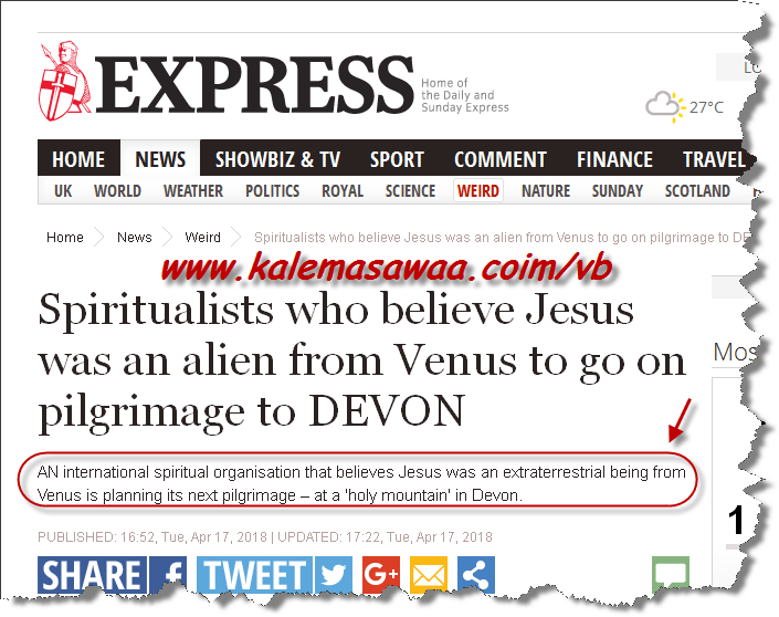 آخر تقاليع الضّلالات و البهتان : (مؤمنون) مسيحيون يعتقدون أنّ المصلوب هو كائن فضائي قادم من كوكب الزهرة و قد إلتقاهم أحدهم كما يزعم.