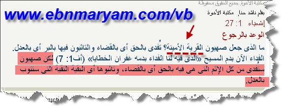 صهيون بحسب المفسّر المسيحي ذاته مُرتادوها ستُغفر ذنوبهم و خطاياهم دونما حاجة لفداء بدم المصلوب !!!!