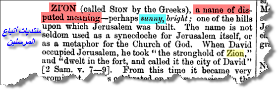 قاموس كتاب النصارى المقدس في خضم تعريفه لصهيون و ضع لنا كمرجع نص اشعياء 1 عدد 27 .