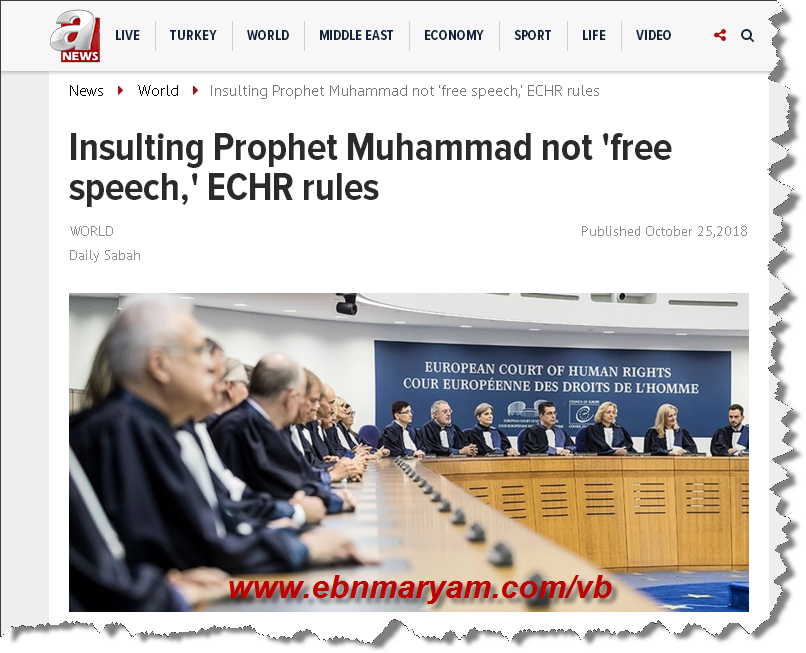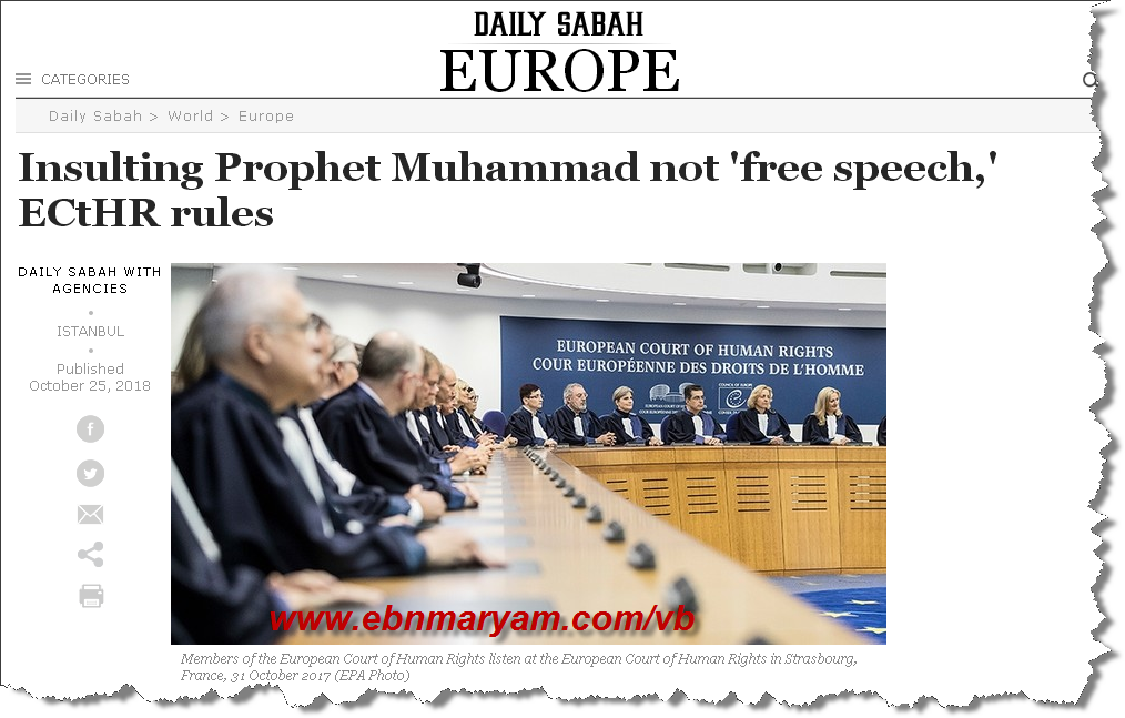 المحكمة الاوروبيه :الاساءه الى النبى ( صلى الله عليه وسلم ) سفاهه