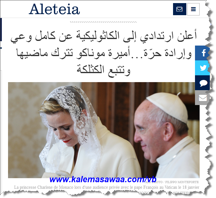 أعلن ارتدادي إلى الكاثوليكية عن كامل وعي وإرادة حرّة…أميرة موناكو تترك ماضيها وتتبع الكثلكة !