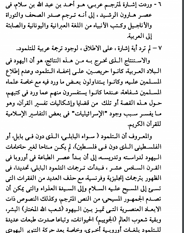 سادسا : التلمود بحد ذاته لم يكن متوفرا الا لكبار احبار اليهود و الدارسين منهم و ليس للعوام منهم فكيف يمكن لامي عربي ان يصل الى التلمود و يقتبس منها :