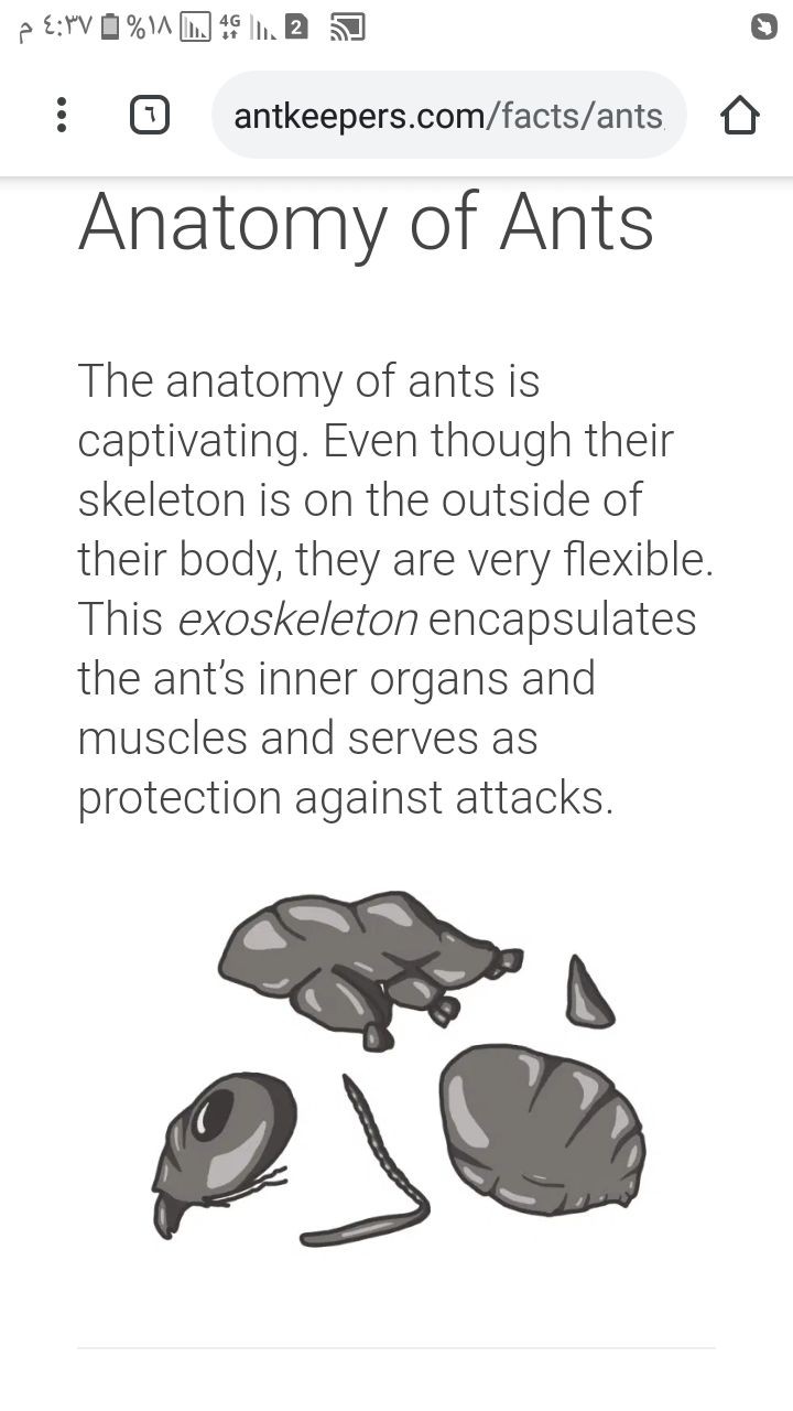 The exoskeleton is a fundamental part of the anatomy of ants, providing a hard surface protecting the ant’s insides from the outside. Rather than our human approach to skeletons (like having them on the inside for starters), many insects carry them on the outside. But just like ours it is central to holding the body together, providing anchoring points to muscles. (1)