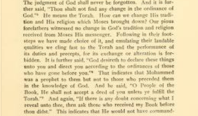 (( Their purpose in citing these verses is to win favor in the eyes of the Gentiles by demonstrating that they believe the statement of the Koran that Mohammed was mentioned in the Torah. But the Muslims themselves put no faith in their own arguments, they neither accept nor cite them, because they are manifestly so fallacious. Inasmuch as the Muslims could not find a single proof in the entire Bible nor a reference or possible allusion to their prophet which they could utilize, they were compelled to accuse us saying, "You have altered the text of the Torah, and expunged every trace of the name of Mohammed therefrom." They could find nothing stronger than this ignominious argument the falsity of which is easily demonstrated to one and all by the following facts. First, Scripture was translated into Syriac, Greek, Persian and Latin hundreds of years before the appearance of Mohammed. Secondly, there is a uniform tradition as to the text of the Bible both in the East and the West, with the result that no differences in the text exist at all, not even in the vocalization, for they are all correct. Nor do any differences effecting the meaning exist. The motive for their accusation lies therefore, in the absence of any allusion to Mohammed in the Torah. ))