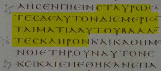 σταυρώσαντες δὲ αὐτὸν διεμερίσαντο τὰ ἱμάτια αὐτοῦ βάλλοντες κλῆρον
