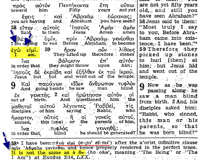 هنا الناس سألت يسوع هل أنت ابن الله ... فقال لهم يسوع أنا هو (ἐγὼ εἰμί ) ... هل هذا يعتبر اعلان من يسوع أنه هو يهوه أم لها معنى أخر ؟؟؟!!