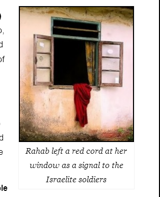 راحاب المومس كانت تترك إشارة حمراء على نافذتها ليستدلّ بواسطتها الجنود الإسرائيليون ( الزبائن) على مكانها !اقتباس: