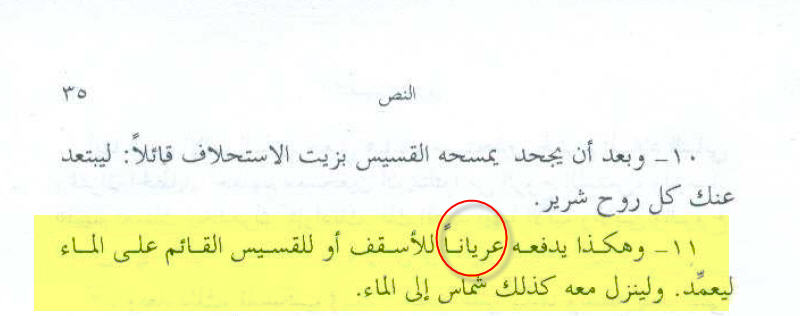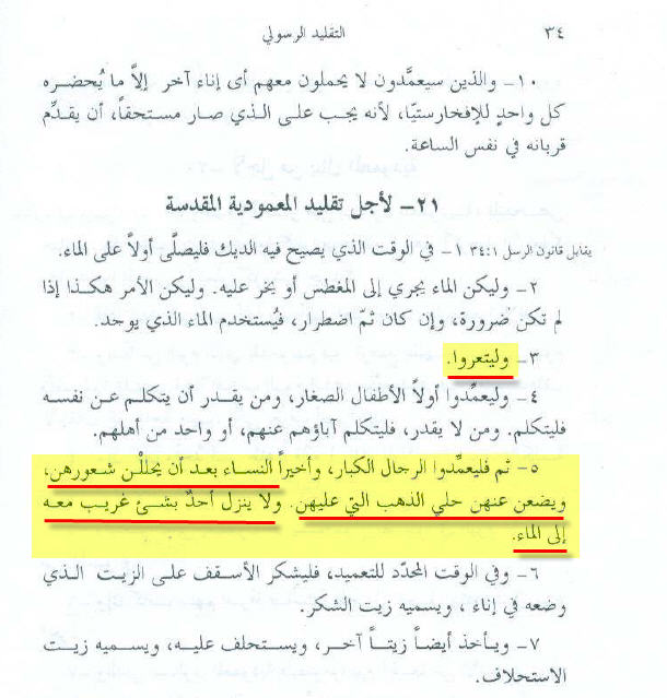هناك بعض النصارى يحاولون إيهامنا بموضوع جديد اسمه ( المعمد ينزل الماء بتونية بيضاء ) ، لنرى ماذا قال نفس الكتاب ص 35
