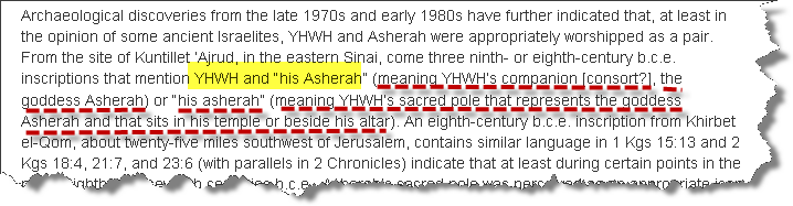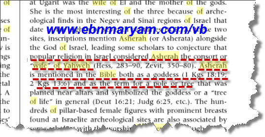 و هى ان اليهود قد عبدوا اشيرا كزوجه ليهوه ( و هو الله فى نظر اليهود و النصارى):
