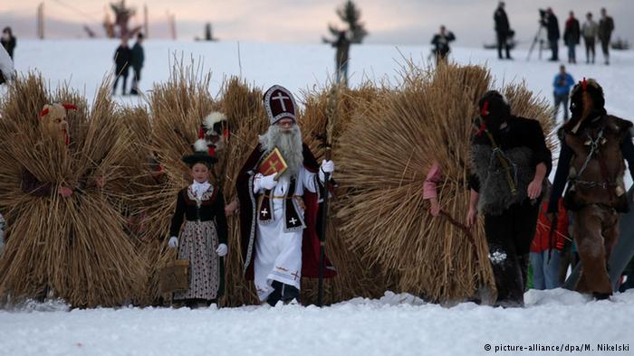 تقام في جنوب ألمانيا مسيرة يتنقل فيها القديس نيكولاوس بين المنازل لطرد الأرواح الشريرة، متبوعاً بمخلوقات برية مكسوة بالفراء والقش.