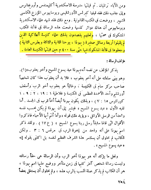 لماذا أقتبس يهوذا من هذة الكتب ...؟؟ ... الأجابة لأنه كان يؤمن بوحى هذة الكتب وبالتالى امن اباء كثيرون بوحى هذة الرسالة (3)
