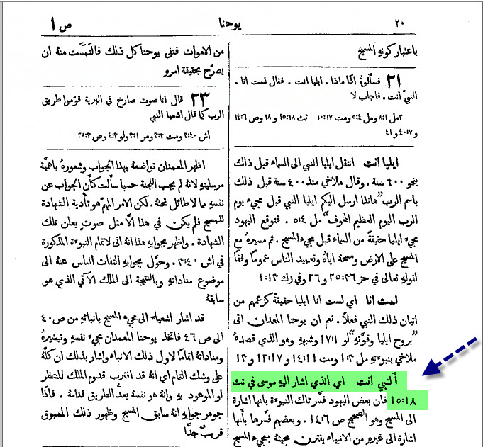 وقد قالت نفس التفاسير المسيحية من قبل ان النبى الذى بشر بة موسى من قبل هو المسيح .......!!!
