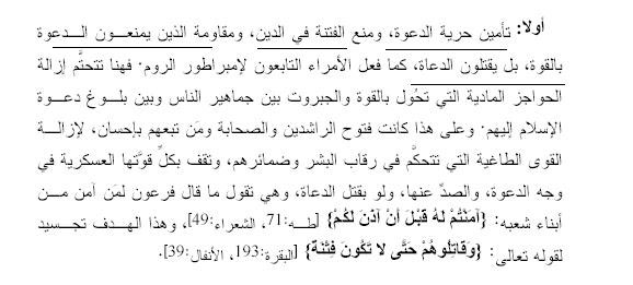 ذكرت فيها أسباب الأمر بالقتال صريحة واضحة كالشمس ....