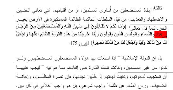 (وَمَا لَكُمْ لَا تُقَاتِلُونَ فِي سَبِيلِ اللَّهِ وَالْمُسْتَضْعَفِينَ مِنَ الرِّجَالِ وَالنِّسَاءِ وَالْوِلْدَانِ الَّذِينَ يَقُولُونَ رَبَّنَا أَخْرِجْنَا مِنْ هَٰذِهِ الْقَرْيَةِ الظَّالِمِ أَهْلُهَا وَاجْعَلْ لَنَا مِنْ لَدُنْكَ وَلِيًّا وَاجْعَلْ لَنَا مِنْ لَدُنْكَ نَصِيرًا (75) الَّذِينَ آمَنُوا يُقَاتِلُونَ فِي سَبِيلِ اللَّهِ ۖ وَالَّذِينَ كَفَرُوا يُقَاتِلُونَ فِي سَبِيلِ الطَّاغُوتِ فَقَاتِلُوا أَوْلِيَاءَ الشَّيْطَانِ ۖ إِنَّ كَيْدَ الشَّيْطَانِ كَانَ ضَعِيفًا (76)) النساء 75-76