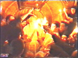 و "المُعجزة" تتم فى حضور بطرك الروم الأرثوذكس الذى يتم فحصه و تفتيشه فى مظهر إحتفالى، قُبيل دخوله السرداب للتأكد من أنه لا يحمل معه أى شيئ (الساحر إيده فاضية أو البرنيطة التى سيُخرج الأرنب منها يتأكد الجمهور من أنها فارغة!!!:p018: ).