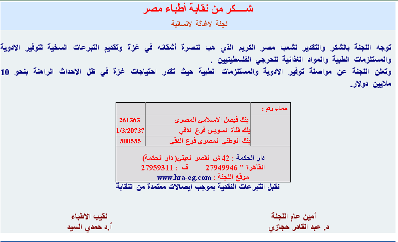 ياغير مسجل تحب تتبرع لغزة اليك تليفون نقابة الاطباء