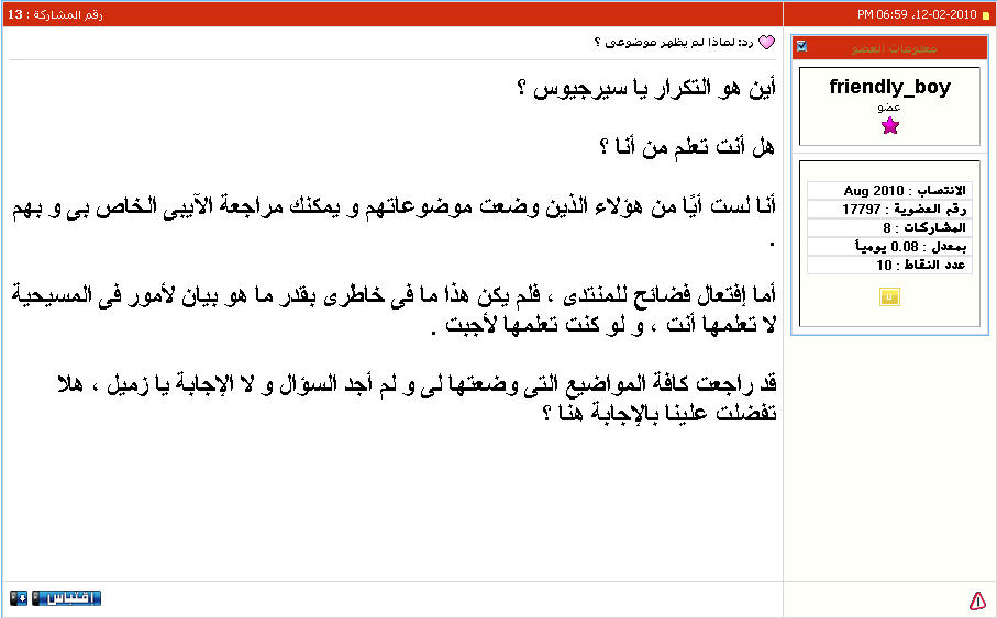 و للأسف كعادة النصارى يظنون أن المسلم الذى أمامهم من السذاجة بمكان ، فطلبت منه رابط الموضوع الذى يماثل موضوعى و ردهم عليه .