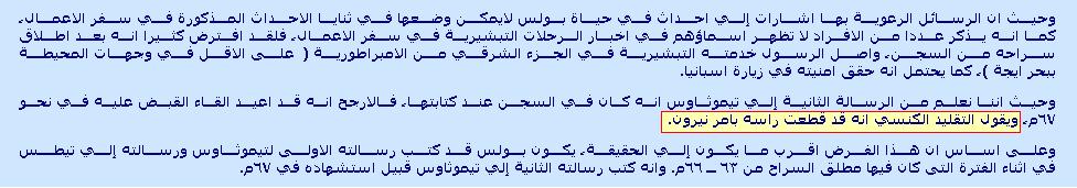 أنظر نهاية بولس حسب دائرة المعارف الكتابية: