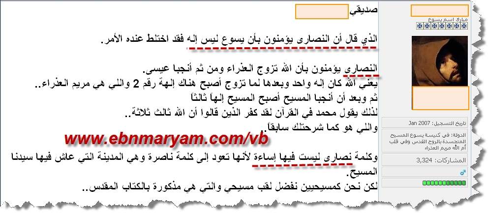 ضيفنا النصراني - و في جهل مطبق - بعقيدته يقول :