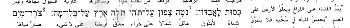 נוטה צפון על-תוהו; תולה ארץ, על-בלי-מה.