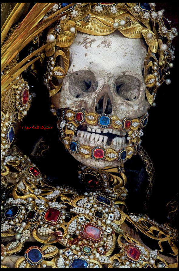 سنة 1578 ميلادي أكتشفت تحت شوارع روما سراديب مملوءة بجثث تعود ( لقدّيسين) قضو نحبهم شهداء كما يزعم النصارى ، رفات هؤلاء الأموات يتم تكريمه بالصورة أدناه تعبيرا من اتباع الثالوث على تقديرهم لتضحيات هؤلاء( القدّيسين ) ......!