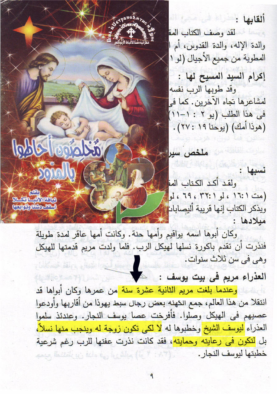 دائرة المعارف الكتابية ( حرف الميم : مريم ) تقول هي أيضا : الاستنتاج الطبيعي من بعض نصوص العهد الجديد هو كون يوسف النجار و أم النور كانا زوجين و لهما أطفال أيضا هم إخوة ( الرب) يسوع !!!